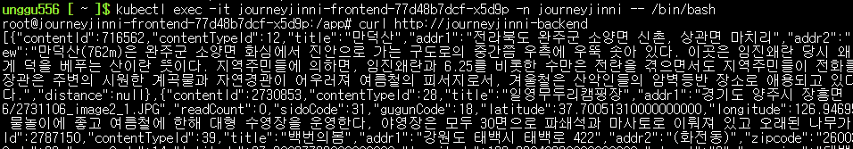 front pod에서 backend pod으로 정상 호출 확인이 되었다.