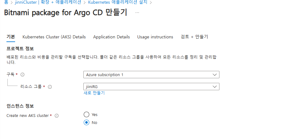 AKS를 새로 만든다. Nodepool은 1개로 설정하고 검토를 눌렀지만