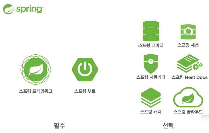 - 스프링 부트, 스프링 프레임 워크 등을 모두 포함한 스프링 생태계