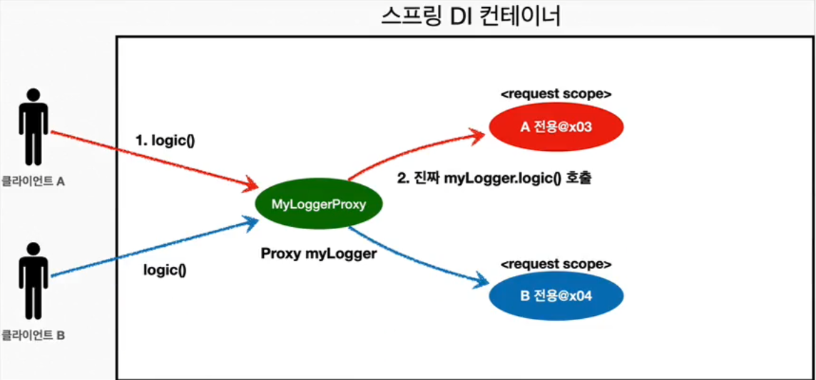 - 이거 덕분에 편리하게 request scope을 사용할 수 있다.