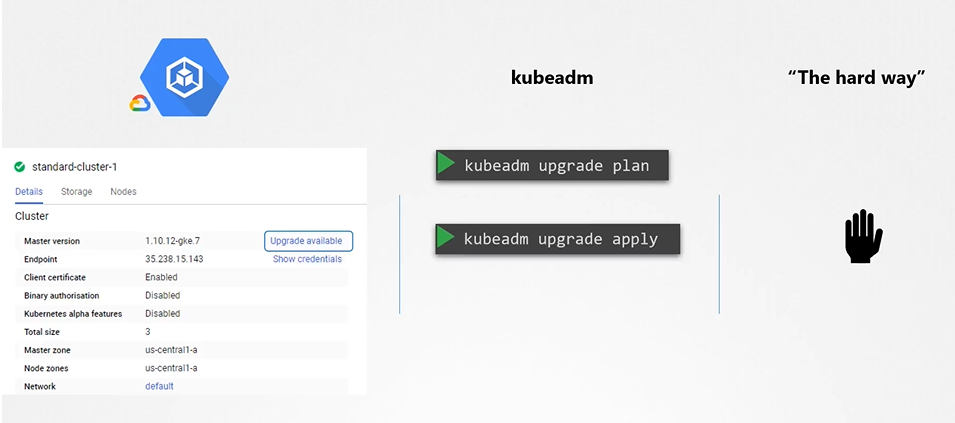 일반적으로 GCP를 사용하거나, kubeadm을 사용하여 업그레이드 한다고 한다.