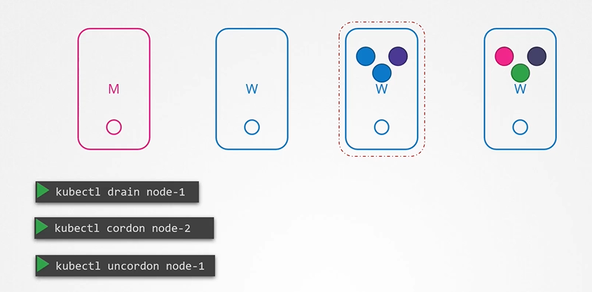 drain명령어 이외에도, cordon 명령어와 uncordon 이 있는데 cordon은 해당 node에 pod들을 지금 당장 옮기지는 않지만 새로운 pod가 이 node에서 스케줄링 되지 않도록 설정하며 uncordon은 drain 또는 cordon 상태여 스케줄링 되지 않은 node를 다른 pod들도 스케줄링 가능하도록 lock을 해제하는 명령어이다.