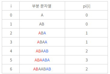 - 매칭 실패시 돌아갈 인덱스를 찾는 과정